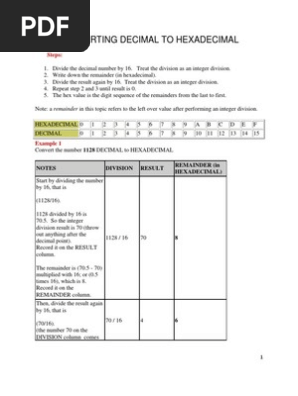 Conversion Table Decimal Hexadecimal Octal Binary Pdf Document
