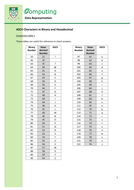 Ascii Characters In Binary And Hexadecimal Teaching Resources