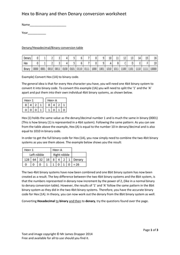 Decimal Hexadecimal Binary Conversion